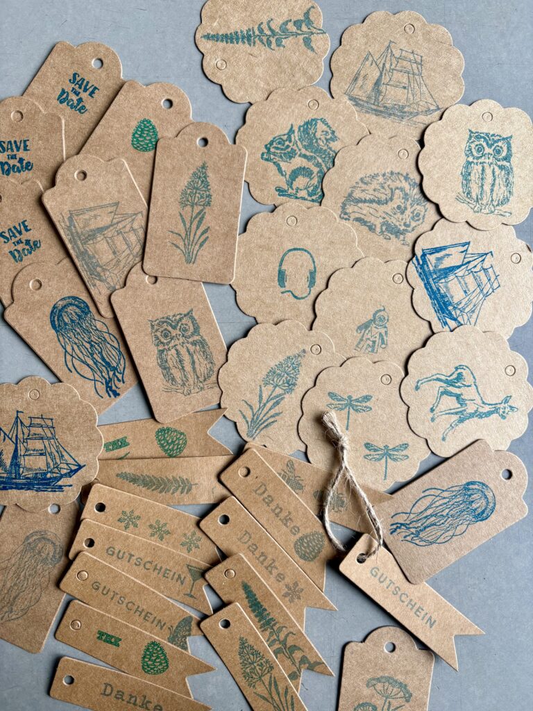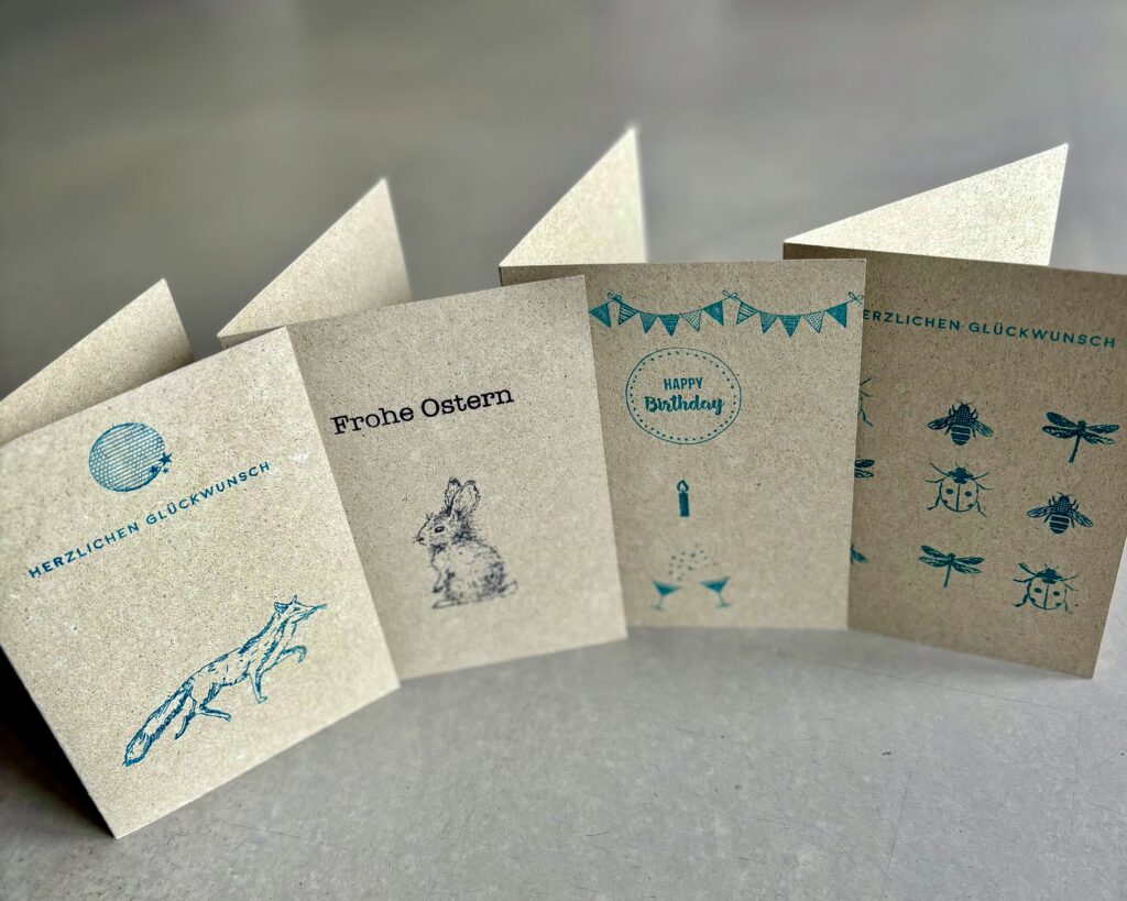 • Handgestaltete Karten und Anhänger aus Kraft- oder Graspapier ab 1€