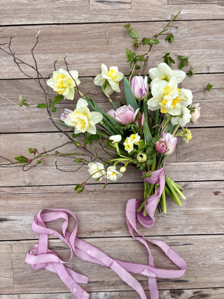 4. Schleifenband nach Wahl (auch selbst pflanzlich gefärbte Bänder) pro Strauß ab 10€